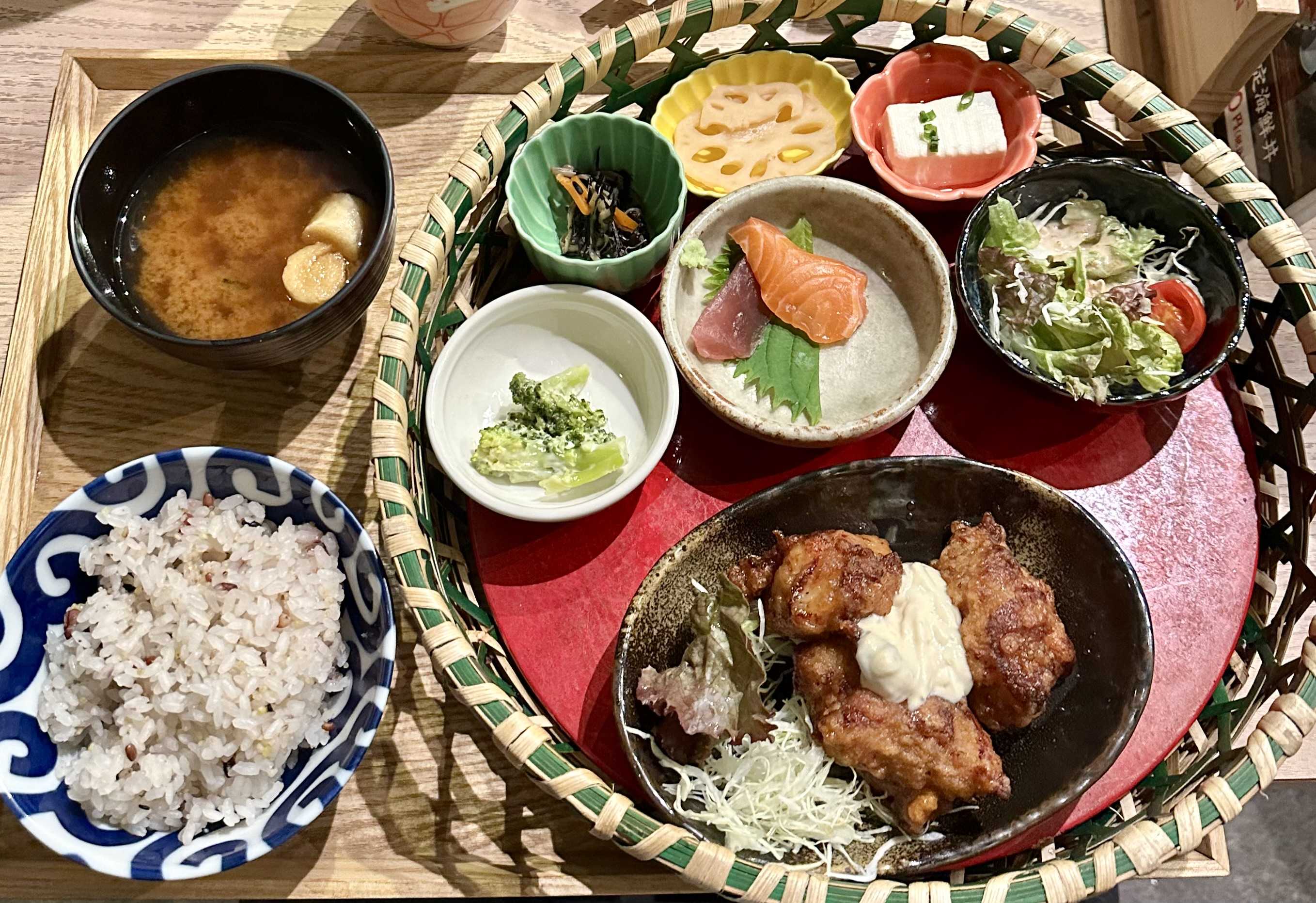 朝はフルグラ、昼は籠御膳(チキン南蛮)夜は野菜塩ラーメン