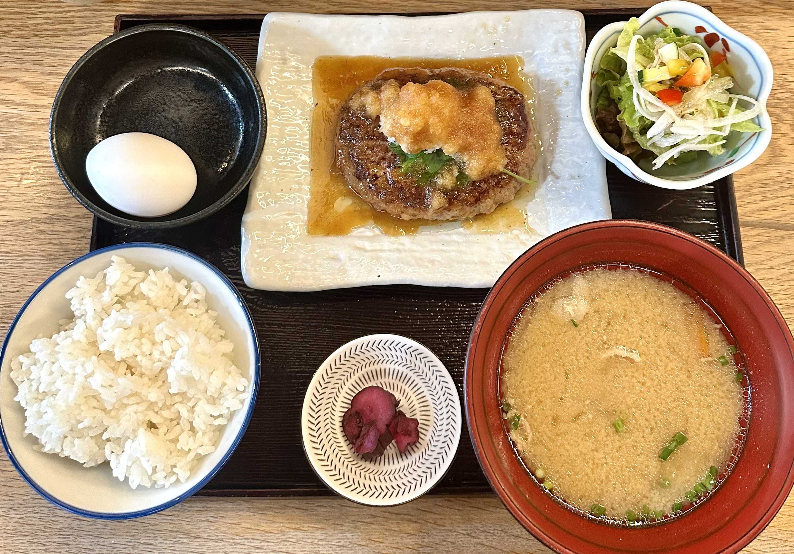 朝はフルグラ、昼はおろしハンバーグ+豚汁定食夜はイタリアン
