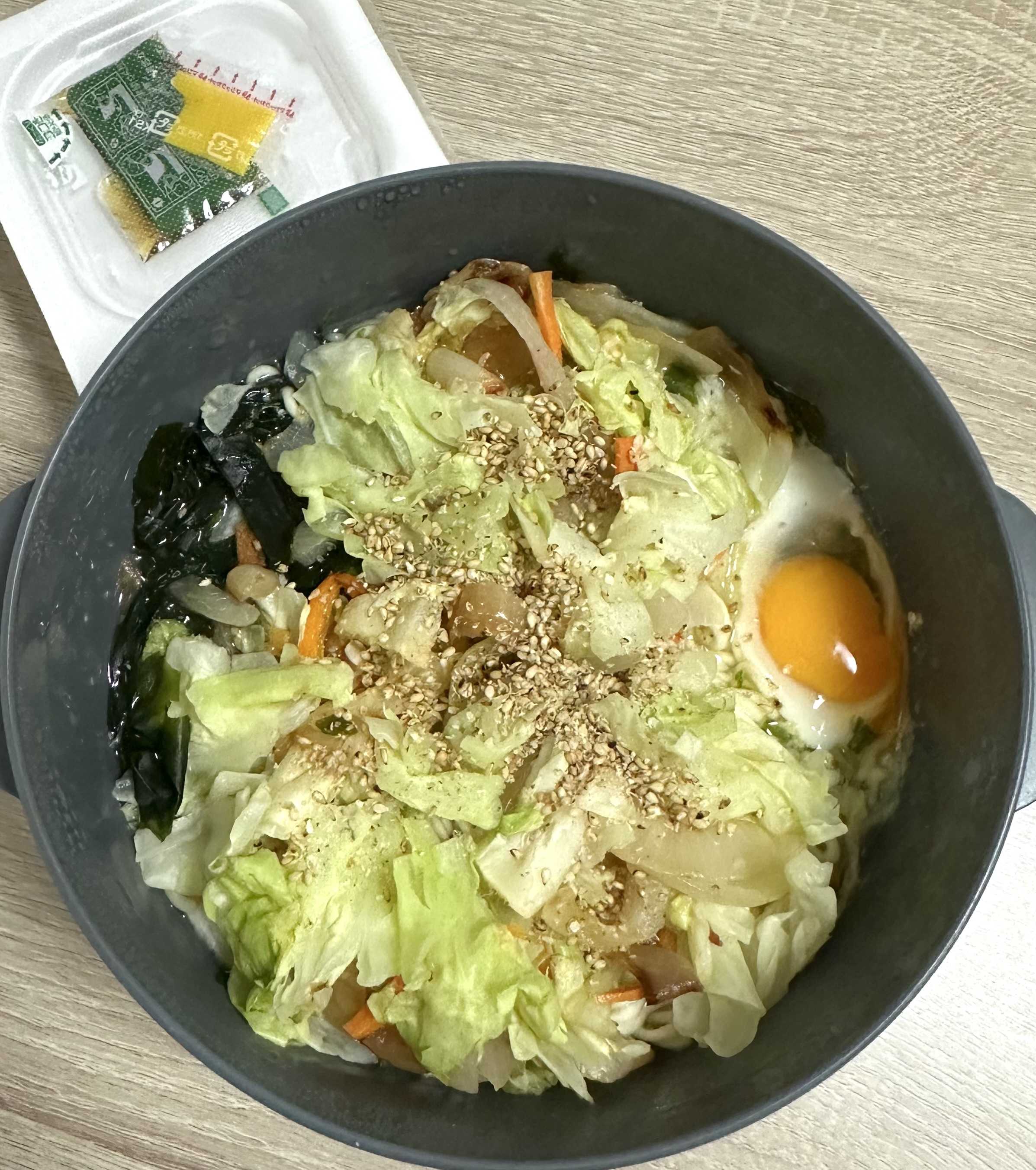 夜は野菜塩ラーメン+納豆