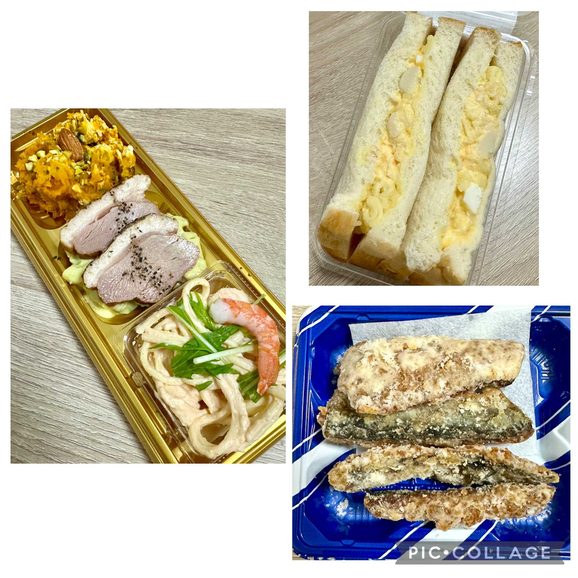 おやつにあんバターサンド夜はつまみ諸々(3種サラダ、ポテマカたまごサンド、さんま竜田揚げ)