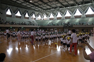 今日は朝から幼稚園の運動会がありました。過去2年は続けて雨で延期になっているので、今年は県立体育館を借りて行われましたが、今年は天気が良かったです(^-^)園児は200名ほどですが、保護者の方も入れて700人くらいいたと思います。でも、それほど多い感じは無かったですね。キレイで良いんですが、やっぱり運動会は外が良いかなって思いました。年少の娘も頑張って走ってましたよ。親子の競技やお遊戯などもあって、盛り上がってましたね。クラス対抗リレーなんかは担任の先生も、子供たちが頑張って走っているので最後のほうは(T-T) ウルウルきてたりして、、、長男もリレーで頑張ってましたが、見ていても全部の子供たちを応援したくなっちゃうくらいみんな頑張ってました。もしよろしければ、最後にポチッと押していただけるとうれしいです。よろしく!人気blogランキングへ