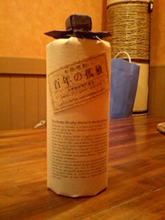 プライベートで呑みに行ってたら、STO社長あらわる。OGAちゃんもいて、まぁ、OGAちゃんの将来のこととかの話で盛り上がる。で、STO社長、「百年の孤独」をわざわざ家に戻って持ってきてくれました。呑ませたかったからといってくれて。これ、味は焼酎じゃなくてウィスキーとかブランデーとかそゆ味がしてました。あれ?常連さん達みんな飲みました?早いもの順だろうけど。最初、残りはお金とってお客さまにだしなさいとSTO社長がママに言ってたけど、そうもいかないわよねーとかママいってたので。これ、「百年の孤独」STO社長とOGAちゃん。Sumi