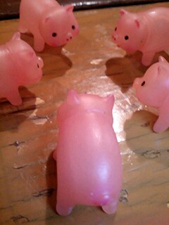 最近松屋に登場している、ブタくん達。誰かが大量に置いて行ったのだけど、松屋に行くたびに変化が。いろんなフォーメーションを組んでいるのだった。誰がやってんだ?