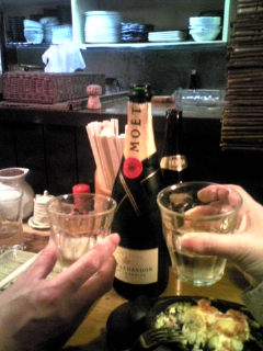 あのYKYさんカップルがっ。入籍、そのうえ!ベイビィーが。たいへん、たいへん、おめでたいです。ママも「もー、どれくらいぶり?常連さんで赤ちゃんできるのー」と感動しておりました。YKYパパはたぶん、きっとベイビィをかわいがりすぎてタイヘンになるのではないかと、松屋女性人の予想ですw ダッコしてる姿とかまだ想像できないけど・・。お祝いのシャンパン。ほんとにほんとにおめでとうございます。