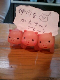 松屋ブタくん情報!つか、この間行ったら、ブタくんが減っていた。これわみんなの叫びだ!仲間を返せぇぇ!decorated by ぷみぽん