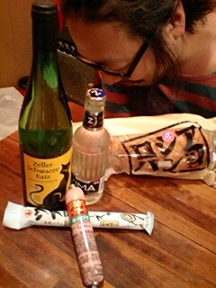 SKさん&SHKさんが買ってきてくれたワイン。最近よくワイン飲んでますよね?この写真、KENちゃんに怒られるかな(笑)でも、いちばんワインがウマく撮れていたのー。クレームは松屋で!