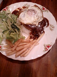 松屋特製モコモコDONです。ハワイのロコモコを意識してみました。ご飯の上にハンバーグと目玉焼き、お野菜とポテトがのっかってます。松屋のハンバーグにデミグラスソースがもともとうんまいので、まぁ、まずいわけがない。どうぞお試しあれ。もうすぐ桜が咲くしね。ママはウィンドウに装飾をほどこしたのだった。なにかやるとママは、「みてみて、これ気がつかなかった?」っていいます。なんかうれしそうなんですよね、それが。