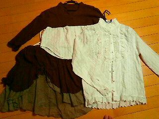 アジアなシャツはワキ下から切ってスカートに、二枚の余った部分をつなげて、