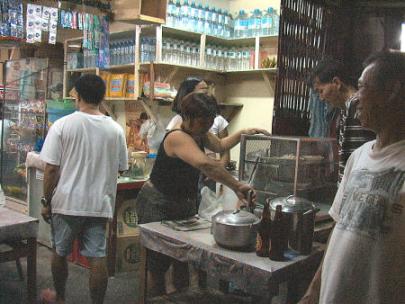 私は,あちこちの店へ行くより,親しくなったら,そこへ通うタイプである。次の晩も行ってみた。「あれ?」シャッターが半分閉まっている。ガラスケースも出ていない。中をのぞく。誰もいないと思ったら,ちょうど中から1人が出てきた。「今日は,お祈りの日なので早く終わったの。」…ってことは,ここでは食べられないってことだ。他の店を探そうかと思っていたら,「まあ入ったら?」と言われ,とりあえず中に入った。