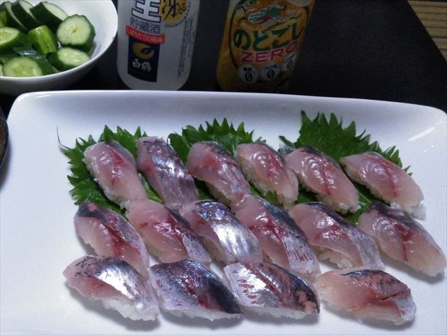 最初は小鯵が釣れだしがっかりしていたら、暫くすると中アジがメインに釣れだしたので