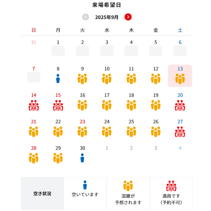 万博会場への入場予約が劇的に取りずらくなりました。↓入場予約が取れないから7日前予約の抽選に参加できない。若しくは、遅い時間の入場予約しか取れないから、、、(以下同じ)(大阪関西万博 来場希望日)前段の話として、システムのログインの際、入場予約の際、来場希望日検索の際、日程変更の際、7日前予約の際、もろもろのタイミングで待機列に並ばされます。万博のシステム、終ってる。。。そんなブログを書こうとしていたら、9月8日21時前に来場予約枠の大規模開放がありました。9月の3連休に入場予約が取れてしまいました。【関連記事】・【悲報】要整理券を直前に発表 大阪関西万博 「USJ『ハロウィーン・ホラー・ナイト』」 ・大阪関西万博 関係者入場証(ADパス)の不適切利用 ・【真夏の不思議】8月3日 大相撲 大阪・関西万博場所整理券ノ怪 ・万博裏技 パークアンドライド 優先入場(シャトルバスに乗らずに優先入場)・大阪関西万博 7月23日開催分の演出時間に関する経緯と対応について・万博会場 あまり待たずに入場できるか検証してみました入場予約まで三回順番待ち画面が出てくる。世の中の人そんなにヒマちゃうぞほんまに— kn2011 (@KNII2010) September 7, 2025 9時過ぎに整理券を配布しているチェコパビリオンに、スタッフパスを首から下げた人が並んで労せず整理券をもぎ取っていきます💦来場者が多いからこそ、スタッフパスの不適切な利用を制限してください😂#ADパス #スタッフパス#不適切利用 #expo2025https://t.co/VwfrzdkOMH— URA?定価並みで購入した日記 (@Umitosake145951) September 8, 2025 万博チケット 一日券追加投入・8月30日 null²する音楽会 日本フィルハーモニー交響楽団・8月31日 ショパン・ガラ・コンサート ワルシャワ国立フィルハーモニー管弦楽団 pic.twitter.com/q34DWVBRdx— URA?定価並みで購入した日記 (@Umitosake145951) August 26, 2025 万博の9/13以降のチケット、9:15頃に一気に相当数増枠されたけど、9時入場は15分で会期終了まで全部消えたな。恐ろしい恐ろしい。— ペンギン@expo2025 (@penguin_expo) September 8, 2025 【速報】8/30の来場日時予約、完全に埋まる会期開始以来初めて、来場日時予約が9時から17時まで全て満員になりました。推定来場者数は約22万人です。#万博 #大阪万博 #大阪関西万博 #EXPO2025 pic.twitter.com/NPstMACTG3— ペンギン@expo2025 (@penguin_expo) August 27, 2025 万博のBANの件、万博 GO の Discord を漁ったら手動でやってたのに BAN されて、しかも親戚のアカウントにチケット譲渡した分まで全部無効化されたなんて人がいてだいぶ酷い状況消費者庁案件覚悟で「あと1ヶ月持てば…あと1ヶ月や…」ってシステムにはほぼ手を加えずヤケクソ対応してるとしか思えん https://t.co/PjGDOtUJDt pic.twitter.com/p2KzouOv7D— Torishima / INTP (@izutorishima) September 6, 2025 なんか万博サイトBAN祭りの話題の中で、複数端末を利用した手動操作も不正に当たるとかいう話が上がっているが、公式で複数端末を利用したログイン方法がわざわざ説明されているんだから流石に複数端末は不正じゃないのでは。https://t.co/R7ut3GXCQLあと複数タブも個人的には問題ないだろと思う。 pic.twitter.com/PiaLhH8bhX— るか (@keita173) September 7, 2025