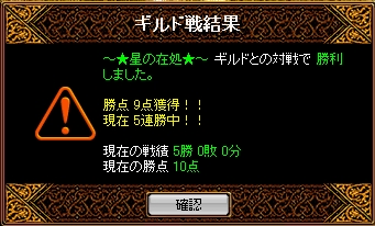 時間=2月7日(月)22時15分場所=ソゴム山脈 / 赤い丘禁止=無結果今回は赤鯖のTOP340Gとの対戦!でしたがお相手集まりがあまりよくなく人数差で押してしまう結果に…Gv後にまた集まりのいい時に戦いましょう!という耳を頂きましたのでその際はぜひよろしくお願いします^^SS撮り忘れて得点あいまいですが7000-0くらい本文短いのでSSないと寂しいものですね><