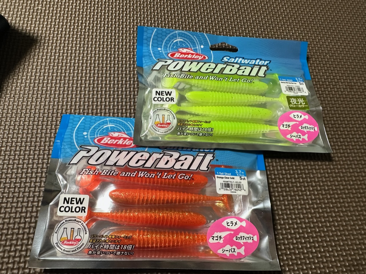 仕事道具を調達しようと立ち寄ったホームセンターがなぜか釣具のコーナーが大きかったのだ。とりあえず気になっていたワームを買っておいた。バークレー パワーベイト T−TAIL SHAD 3.7インチインチ表記の下にメートル法での表記があるのが親切ですな。ソルトで使うのが前提なだけあってグローカラーもラインナップのあるのが嬉しい。ソイなんかにいいんでないの。天気が落ち着いたらぶん投げてみます。