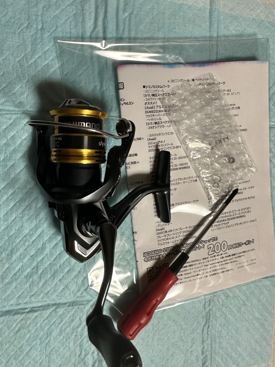 サハラC2000HGSのラインローラーは純正だと樹脂と金属のカラーで回るようにできている。それはそれでグリスだのオイルだのメンテナンスしてればどうということはないし良く回ってくれるのだがモノは試し、やってみることにした。といってもネットでおおよその情報は手に入るし、キット化されて販売されている。今回はHEGDEHOGSTUDIOで販売されているキットを使った。HPからも購入できるしAmaz○nからも買えまっせ。海で使うので防錆ベアリングを購入。スペーサーからカラー、ベアリング本体、説明書までついている。有難い。工具は+ドライバーがあれば最低限のことはOKピンセットがあるとなおやりやすいオイルも一応用意した方がいいな。そうそう、組み付けに自信がない人はネジの緩みどめを用意してな。ラインローラーは締めすぎると回らないが緩すぎるとリールを巻いてる最中にネジが緩むんだぜ。慣れてる人は無くてもいい...はず。あと明るくて平坦なところでやりましょう。細かい部品が多いので、トレーなんかあるといいぜ。釣りで使う前オイルもさしてね。組み立ての際はスプールを外してハンドルを固定した方がやりやすいかも?アームを外してもいいがそれは流石に手間だ。曲げないようにだけ気をつけるべし。組んだらオイルを刺して完成。締め付けが適正ならスルスル動くはず。爪楊枝なんかで動かしてあんばいを見てみるといいでしょう。うまく回らないのは締めすぎか組み付け時の部品の順番の誤り。ラインローラーが偏ったり、斜めになったりするのも部品の配置ミスだ。説明書みたいに部品を並べながら組んでいくのがいいぞ。