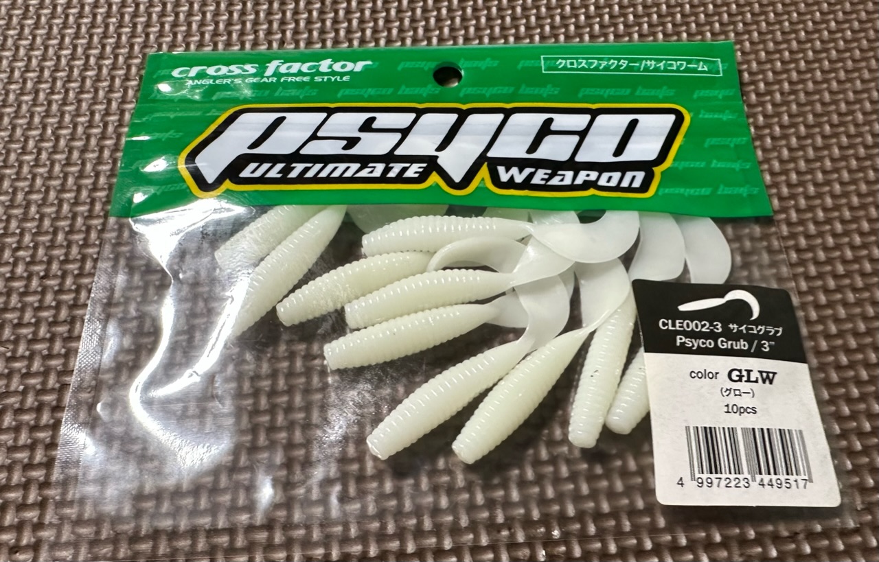 Amazonで送料込み296円なり。テール大きめ、ボディ小さめ。グローカラー。10個入り。裏面には何故か幾つかのリグの種類の構図がプリントされている。メーカー名なし。製造元なし。問い合わせ先もなし。恐らく他のワームも同じプリントなのだろう。コストダウンを図っているのか?クロスファクターというブランドは大阪の浜田商会で取り扱っているブランドらしい。釣れるといいわね。