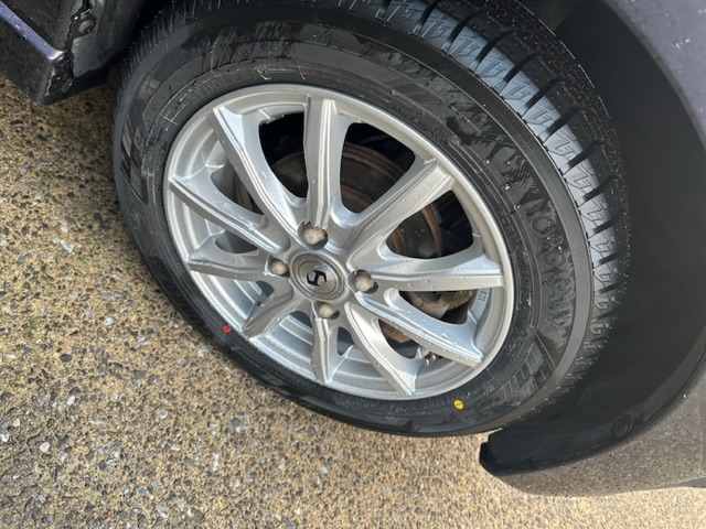 いい加減やらねばとずっと思っていたがまだやっていなかった。今年は新しいタイヤにしました。ig60 ヨコハマです。どれくらい「効く」か雪が降ってみないとわかりませんが、今までのタイヤよりは効くでしょう。トルクレンチでしっかり規定トルクで締めてテスト走行もしました。とはいえ素人整備なのでしばらくは車にトルクレンチぐらいは積んですごしたいと思います。ナットが緩まない保証なんてどこにもないからねえ...新品なので当然イボイボもついてます。交換している最中にリアの下回りに塗装ハゲを見つけた。トレーリングアームって部分かな?とりあえず持ち合わせのラッカーで軽く拭いておきました。応急処置です。春のタイヤ交換の際に剥がれていたらそんとき考えましょう。