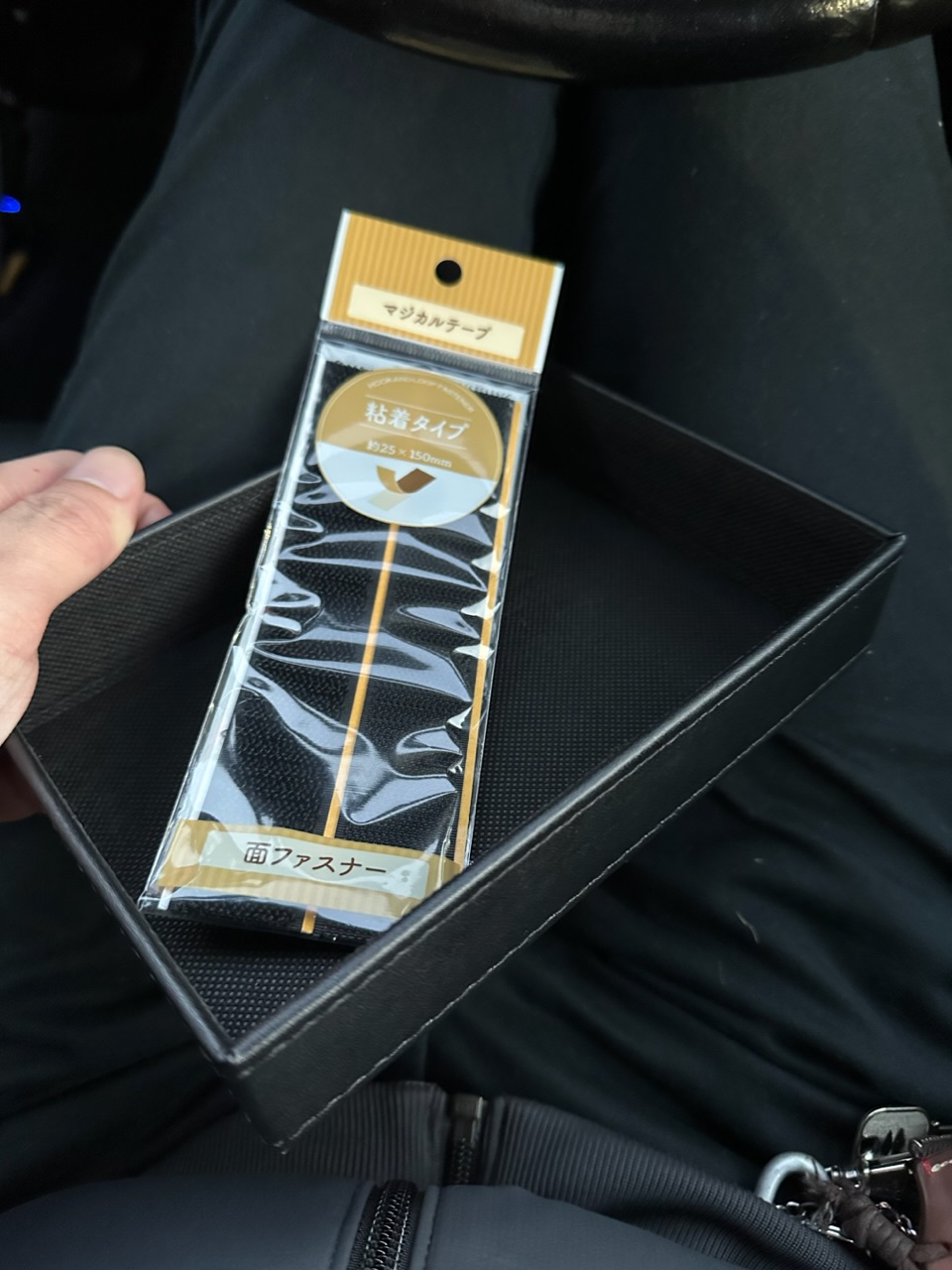 車の運転席と助手席の足元の間に小物置き場を作りたかったのだ。高さがあると足元狭くなるから浅めのやつで作ろうセリアで買ってきたトレーとマジックテープぺたりと貼って設置充電中のスマホだの財布だのおけるようになりました。ちょっとブッキラボウだけど220円でできたので満足ばい。...ゴミ箱はどこに置こうか。