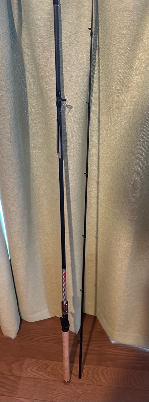 スコーピオンMD200をせっかく買ったので一本長めのベイトロッドでも買っておくかと思って長さだけでとりあえず買ってみました。中華ベイトロッドです。シ、シルバー Gragon?ス、スピン?15lbのラインまで対応だそうです...15lb....? 中華系にありがちな黒塗りガイド頼りないシングルフット樹脂感溢れるリールシート合格だそうです。そのうち使ってみます.....思いっきり振ってぶっ壊れないかちょっと不安ですが..1ozと5インチぐらいのワームをフルキャストして問題なければ使えるでしょう。...バット部分からバリバリ折れたりしないよな?