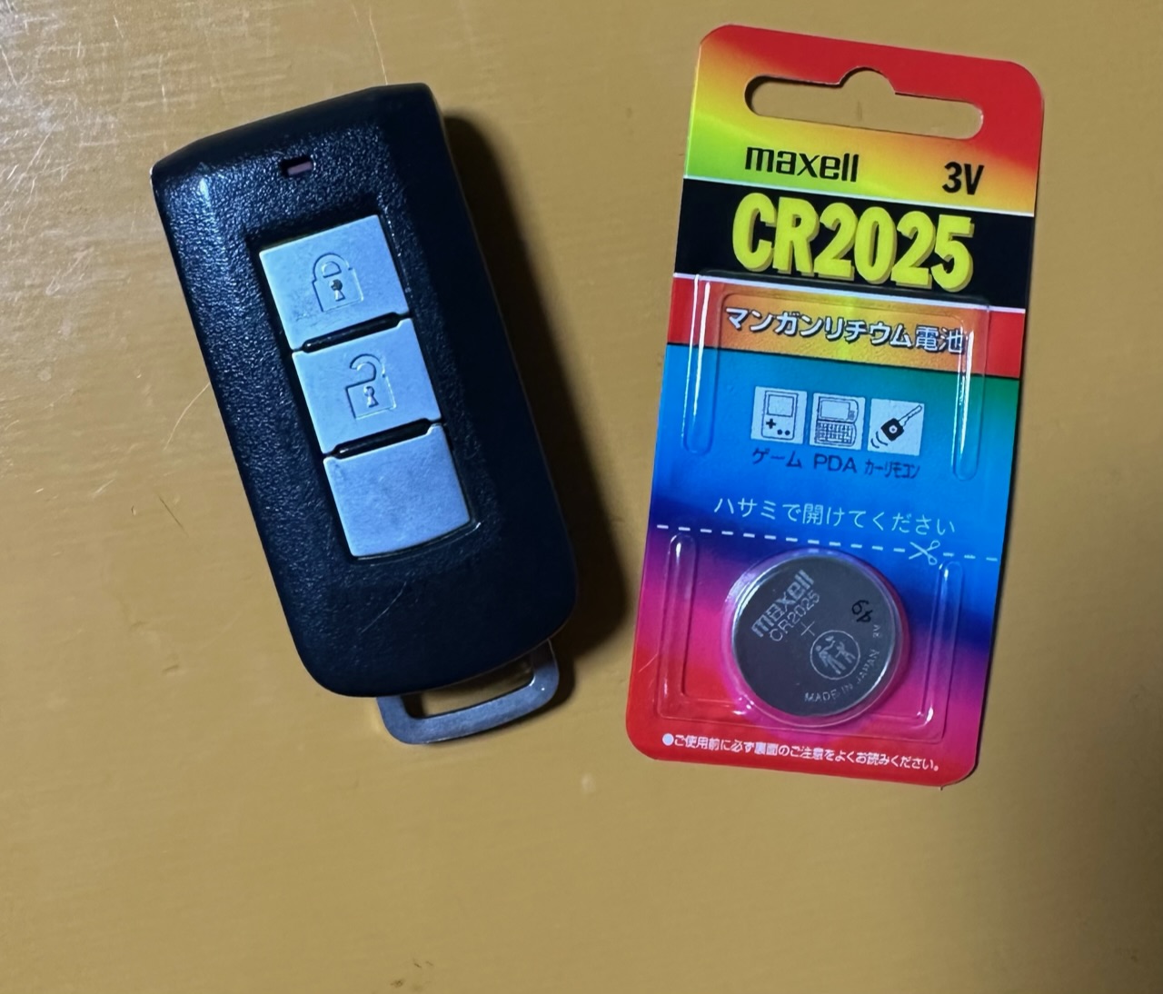 最近EKワゴンのエンジンをかけるとメーター上部の黄色いカギマークのランプが1分ほど点滅する。鍵を車内に入れてるのに何故光るのだろう...とぼんやり思っていたがここ最近毎回エンジン始動のたびに点滅するので原因を調べてみたら、キーレス電池残量の警告らしい。そうかそうか。というわけで交換します。本来ならEKワゴン(B11W)のキーレスのボタン電池はCR2032らしいがたまたま手元にCR2025があったのでこれを使うことにした。一応2032も2025も大きさが若干違うだけで使える...らしい。電圧一緒だし大丈夫だっぺ。板鍵が挿さっている面に小さい溝があるのでピックだのマイナスドライバーでこじって開ける。僕はマイナスドライバを入れてねじって開けました。あとは外して入れるだけ。ついでに綿棒で細かい部分の汚れ取りをしました。蓋を戻して完成です。赤い枠みたいな部分はおそらく防水のパッキンだから下手に触らないでね。動作確認をしたが当然電池のサイズが若干違うだけなので問題なかったです。振ってみてもカラカラ音がしたりもしません。それにしても警告灯で教えてくれるなんて親切なものですね....最近の車はみんなそうなのかねえ。