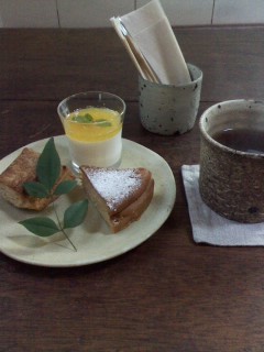 新年になって初めて古道具屋さんに出かけてきました。4日からオープンされてたのですが、やっと行けました。お天気もよかったので、駅から歩くのも気持ちよかったです。今日は紀の川市のカフェさんの出張日。紀の川市まではなかなか行けないので、「おやつセット」とアールグレイをいただきました。おやつの種類はスコーンとパンナコッタと塩キャラメルのチーズケーキでした。カロリーが気になりましたが、ふりきって食べました。^^どれもおいしくて幸せでした。