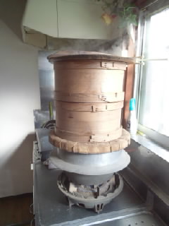 今日は義母宅でお餅つきをしました。メンバーは私達夫婦と帰省してる長男です。お餅つきも何年ぶりでしょうか。。まず、もち米を蒸して餅つき機で捏ねます。鏡餅をとったあとは小餅をつくりました。お義母さんも、小餅を4つほど丸めました。準備や後片付けに時間はかかりますがやってる時は楽しいし、つきたてのお餅は美味しいですね。写真は蒸し器で蒸してる所と、捏ねてる所。おもちに水を入れる役目は長男でした。 太い腕です。^^