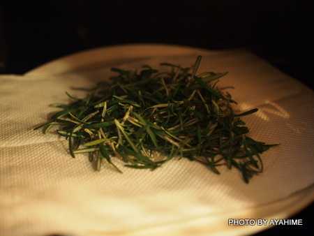枝からむしり取った葉を洗って乾かします