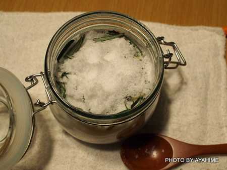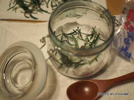 お塩とローズマリーの葉を交互に入れていきます