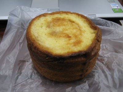 そんな感じで夜仕事なんすよ。朝9時まで仕事で、21時からまた仕事なんすよ。なので、10時ちょっと過ぎに家に帰って、飯食って寝るんすよ。で、夕方起きて、18時に飯食って19時に家を出るんすよ。って、1食足りないじゃん何で?あ会社で1食食えばいいじゃんというわけで、飯っす。丸いパンの真ん中にメープルシロップを染み込ませて、フレンチトーストにしたヤツっす。うまー
