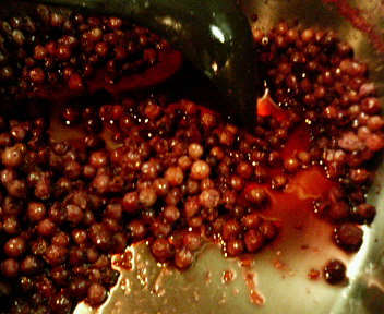 6月に収穫して冷凍保存してあったジューンベリーをジャムに。鍋はル・クルーゼ煮て、絞って、また煮る。こんな感じ砂糖漬けも作ってみます~