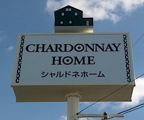 シャルドネホームの看板には立体の建物が付いています。