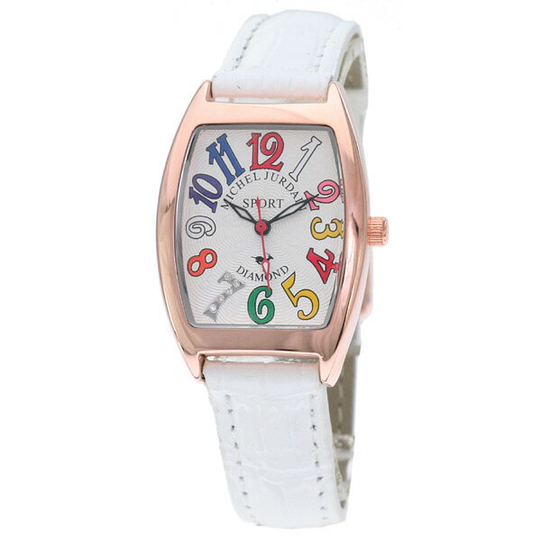 【94%OFF】【8000円以上送料無料】ミッシェル ジョルダン michel Jurdain SPORT 天然ダイヤ入り レディース SL-1100-5 腕時計 アンティーク 【デザインウォッチ】【クオーツ】【文字盤カラー シルバー】【女性らしさ】 【クロノグラフ】#31741価格:4,950円ミッシェル ジョルダン michel Jurdain SPORT 天然ダイヤ入り レディース SL-1100-5 腕時計大きなインデックスが存在感抜群のトノー型(樽型)クロノグラフです。インデックス「7」部分に装飾が施されております。 カラー シルバー・銀(文字盤カラー)/ホワイト・白(文字盤カラー)ホワイト・白(ベルトカラー) カラーについて 素材 ステンレス(ケース素材)レザー(ベルト素材) 素材について 仕様 駆動方式 クォーツ(電池式) 駆動方式について 防水性 日常生活防水 防水性について 表示方式 アナログ風防 ミネラルクリスタルガラス機能1 4年電池/インデックス「7」部分に天然ダイヤ入 仕様について 寸法 ケースサイズ:30x25x7mm(縦x横x厚) ※ケースサイズにはリューズを含んでおりません腕周り:120?165mm重量:30gベルト幅:8?10mm サイズ調整 について 寸法について 付属品 専用ケース取扱説明書保証書 保証について 種別 商品状態 新品未使用 種別について 備考 ※当店取扱いの商品には、メーカー在庫も含まれております。また、複数の店舗にて販売しております関係上、タイミングによりましてはご注文いただいた商品の在庫が切れ、ご用意できなくなる場合もございます。在庫確保の可否につきましては、ご注文後にメールにてご案内差し上げます旨、予めご了承のほどお願い申し上げます。※掲載画像と実商品のカラーが若干異なることがございます。※付属品は仕様変更等により、若干異なることがございます。 ご利用案内