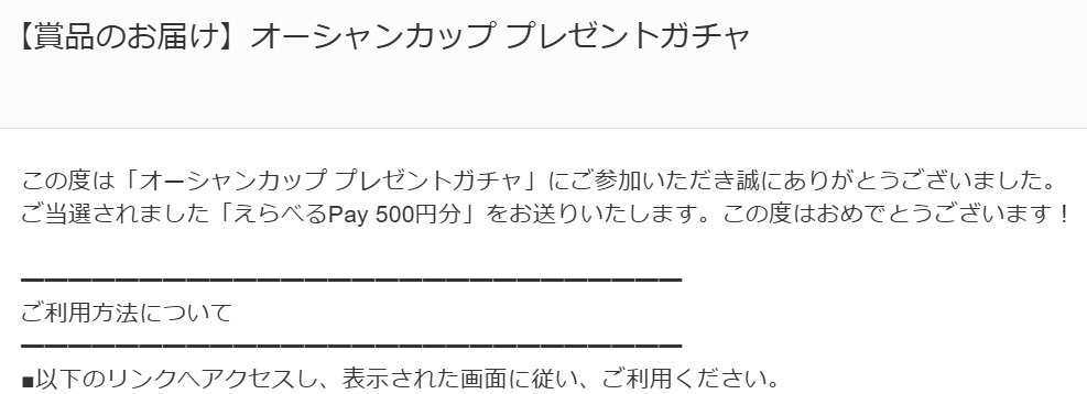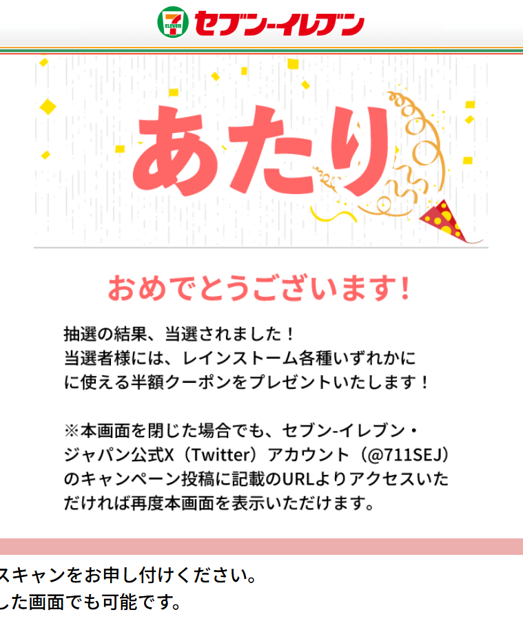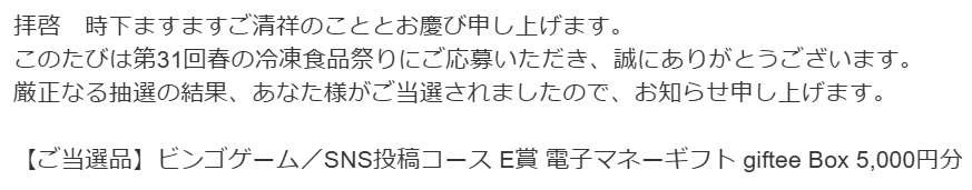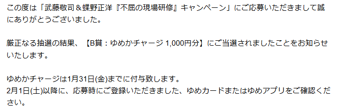 1ポイント当選今月初!月末にようやく当たりましたありがとうございます