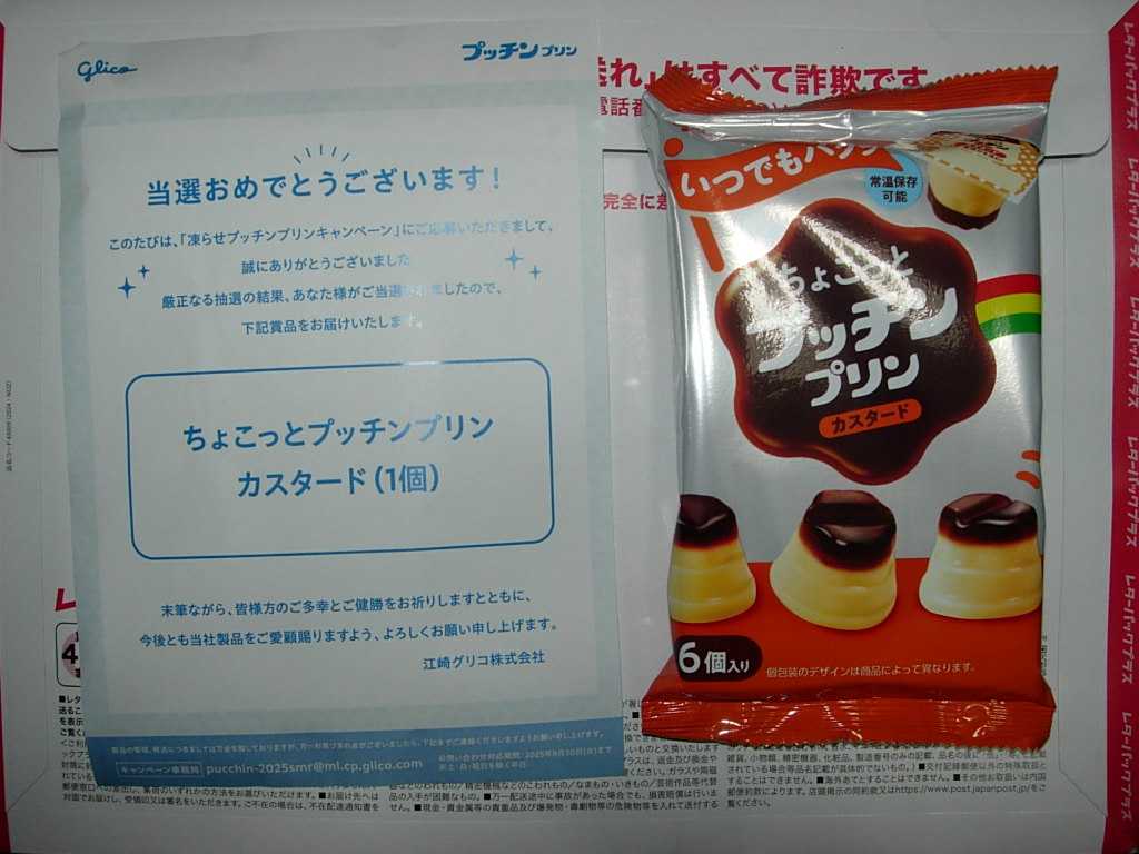 プッチンプリンキャンペーン事務局様より【当選候補のお知らせ】メールが届きました当選品 Wチャンス:ちょこっとプッチンプリン (800名枠)2口応募でした早速必要事項を送信しました賞品のお届けは9月下旬を予定とのこと楽しみにしていますこの度はありがとうございました【送料無料】 グリコ ちょこっとプッチンプリン カスタード 120g(20g×6個入)×12袋 プッチンプリン ※北海道800円・東北400円の別途送料加算価格:2,896円(税込、送料別) (2025/9/4時点)
