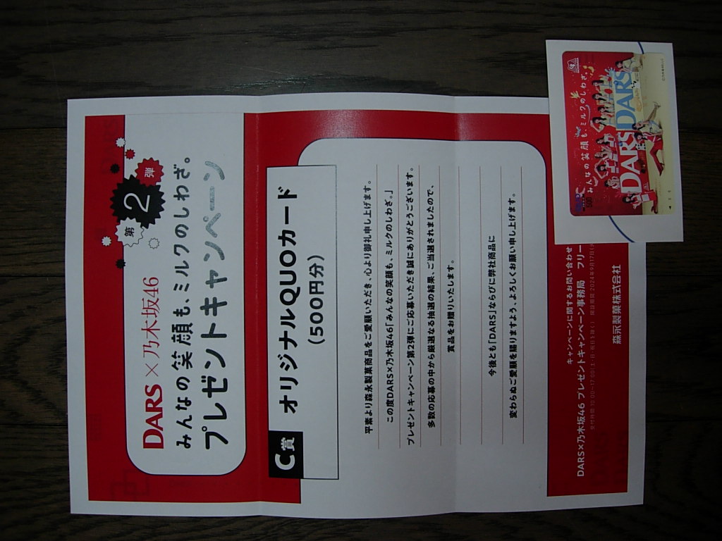 簡易書留で届きました第2弾 DARS&乃木坂46みんなの笑顔も、ミルクのしわざ。プレゼントキャンペーンC賞:オリジナルQUOカード 500円分 (680名枠)1口応募でした乃木坂QUOカードが当たったのはこれで2度目とっても嬉しいです森永製菓様ありがとうございました森永製菓 白いダース 12粒×10箱価格:1,610円(税込、送料別) (2025/5/17時点)