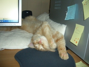 最近家の中の荷物がどんどん増えて、大変なことになってる。なんといっても今はオフィステル(ワンルーム)。こんなにゃん家族も増えて、大暴れ。特に、夜と早朝の運動会は勘弁して欲しい。。^^;まだまだ噛み癖は直らず、朝から夜まで噛み噛み・・・いたた。。こらタビー、いいかげんにしないとレオの雷が落ちるぞ!って・・・もうすでに一度レオの雷が落ちたんだよね。(笑)それでもタビーは、いたって平気な顔でレオにがぶがぶするけどね。^^;寝ているときにタビーにロックオンされると、緊張ものです。(笑)昨日も友達がぶがぶして、血がでちゃったよ。。まったく、このねこは何を考えてんだか。(笑)話は変わって、もうすぐレオの勤務地が変わるので、そちらのほうでアパートを探してた。大体の目星をつけて、早ければ今月か来月には引越しする予定だった。はい、あくまでもいつもの予定です。。が、先日部長から、「もっといいチームがあれば、そっちにまわすから。」と。なぜなら・・・これから仕事をするはずだったチーム長と部長は犬猿の仲。はははっ。。はー・・・で、部長が言ってるいいチームっていうのが、これから行くはずだったところとは本社を挟んで逆方向。ではでは、、どこに引越ししたらいいのかな。。とりあえず、今のオフィステル窓を開けちゃうと、にゃんこが落ちる可能性あり。^^;なので最近のこの暑さの中、窓もほとんど開けられずにいる。エアコンがついてはいるけど、まだ5月だしな~。。タビーは、すこし遊ぶと犬みたいに舌だしてはぁはぁやってるし。^^;前までは、コンピューターをさわってると、タビーはおとなしくモニターの横か後ろで寝てた。が、最近は・・・ちょっと、あんたどいてよっ。^^;