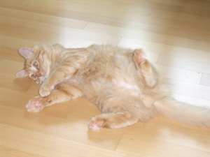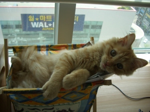 ごろ~んごろんごろ~んうにゃ~せまいにゃ~んにゃーーー!!!とられたにゃーーー!!!あ~、とられちゃったね、、たまたま・・・そんな足おっぴろげてるからだよ。。(爆)それとも韓国男猫の宿命!?っていうか、これ韓国ネタじゃなくて、猫ネタのような気がする。。まぁいいや。