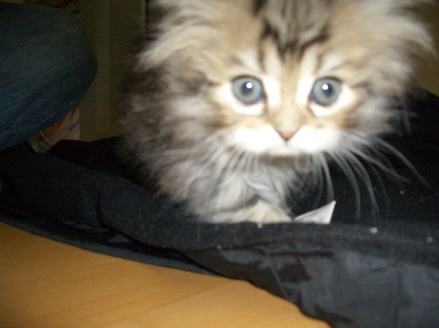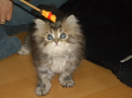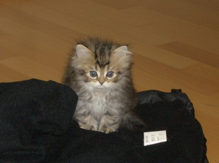 みなさんの暖かい応援ありがとうございました。m(__)mタビーは必ず元気でうちに帰って来るものと信じていたけど、、タビーは金曜日の夜、長い眠りにつきました。金曜日の午後、動物病院から電話があり、「二次感染を起こしてしまった。今日一日持たないだろう。」と、連絡があった。いつも前向きにタビーを見てくれていた先生からの言葉。でも最後まで、白血球さえ増えてくれれば、二次感染も乗り越えられるかもしれないと願わずにはいられなかった。が、もしだめなのなら、せめて最後はうちにいさせてやりたかった。でも、わたしは一人でタビーに会いに行く勇気がなかった。ただただ涙が止まらなかった。レオに頼んだ。「もし、本当にだめだというなら、うちにつれて帰って来て。」と。そして、夕方レオから電話があり、「ペットショップに連れて行こう。とりあえずペットショップに行って話しをしよう。」と言われた。行きたくなかった。ペットショップにタビーを連れて行きたくなかった。でも、どうしようもない。わたしもとにかく動物病院に向かった。家から動物病院まで30分ほどかかる。私が動物病院に到着したとき、タビーはちょうど眠りについたところだった。レオが動物病院に到着したときにはすでに意識はなかったようで、到着後5分位して、小さな声で「にゃ~」と鳴いた。起きたのかと思ったら、それがタビーの最後の言葉だった。タビー、最後に一緒にいてあげられなくてごめんね。でもレオがいてくれてよかった。最後にタビーが一人でなくてよかった。ただ、治療を受けたことにより、タビーは長い間痛い思いをした。それだけが、心残りだった。でもレオの言葉で立ち直れた。「タビーは短い時間だったけど、うちに来て幸せだったよ。 うちに来てたくさん愛情をもらったんだから。 ペットショップにいたら愛されることも知らずに死んだんだから。」私もタビーからたくさんの愛情をもらった。うちに来た時から、かわいさを爆発させてたタビー。怖がることもなく、まずはうちの探検。探検が終わると、なにやら標的発見!標的は?座椅子のひも。(笑)すべての物が、タビーの標的になった。なんでもおもちゃにしてしまう。^^;でも一番のお気に入りだったのは、レオ手作りのタビーハウスと、私の作った犬つきのおもちゃ。(笑)まずは、上から観察、次は、横からじーっ、そして、いざ出陣!召し取ったり!^^遊び疲れると、私のひざに乗って眠る。なぜてやると喉をゴロゴロとならしながら。なれるのに数日かかるかな、と思ったけどほんの数時間でタビーはここまで私たちに打ち解けてくれた。そして次の日からは、私がトイレに行くと、ニャーニャー泣き出し、それでも出てこないとタビーハウスに八つ当たり。^^;タビーハウスをつぶしにかかる。(笑)横になると、私の胸の上に乗って来る。そして少しづつ上のほうにほふく前進。気づけばタビーの顔が私のあごに乗ってる。目の前にあるタビーの姿がかわいすぎて、私は動くこともできない。(苦笑)キッチンで立っていると、鳴きながら足を上ってこようとするタビー。椅子に座るとひざに乗せての催促。もうこうなれば、たった一日で猫ばか全開です。(笑)でもこれからずっと一緒にいられると思っていたタビーはもういない。タビーが逝ってしまってもちろん悲しかったけど、その一方で安心もした。もうタビーは苦しまなくていいから。痛い思いをしなくていいから。タビーの旅立ったところには、タビーの兄弟もいるかもしれない。どこに行っても、タビーはかわいがられるだろうから。だからタビーがいなくなって寂しいけど、悲しくないよ。ただ、気がかりなことがひとつ。うちにやってきて、タビーの苦手なものがひとつあった。それは・・・レオが買ってきたねずみのおもちゃ。(笑)それがまだ家においてある。タビーが一度たりとも手をつけなかったねずみ。このねずみ、どうしようか?(笑)