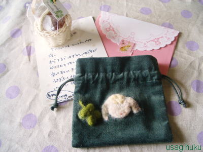 先日お客様から、素敵なプレゼントが届きました♪♪な、な、なんとっ!ペル!!ベルのニットアップリケしてくださいました~♪耳の部分の色合いなど、ほんとそっくりですぅヾ(≧∇≦)ノ"ほわほわしてて、めっちゃ可愛い♪きのこも、ぷっくり☆ 愛用中のデジカメにピッタリサイズ!さっそくデジカメケースとして、大切に使ってます☆*クローバーもついてます。「ぐりぐり・・・」「これぼくのぅ~!!」と主張してます(´艸`*) プレゼントとともに、心温まるメッセージもいただきました。じぃ~ん・・・。感動です*:.。☆..。. 他にも、たくさんのお客様から、うれしいご感想メールをいただいてます。ありがとうございます(*^▽^*)これからも頑張ります♪♪うさぎさん用の手作りハーネス・リード・ハンドメイド雑貨のオンラインショップ『うさぎふく』をしています(*^▽^*)『うさぎふく』のご質問などのお問い合わせは、HPの「お問い合わせ」からお願いします☆*