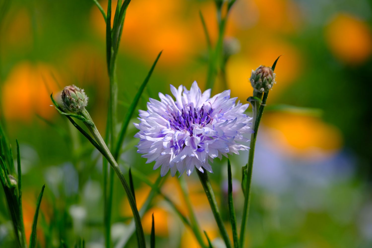 5月下旬の花たちです。だれが主役で誰が脇役か?いえいえ、みんなそれぞれが主役なんでしょうね。ヤグルマギクです。淡い感じの色です。バックのオレンジ?色は、ハナビシソウ。こちらも、ヤグルマギクです。この色の方が一般的かな?ならんで。今度はネモフィラをバックにしたがえて、ハナビシソウが主役に。(*'▽')淡いピンクのポピー。バックも淡めの色合いで。こちらは濃い色のポピー(虞美人草)です。