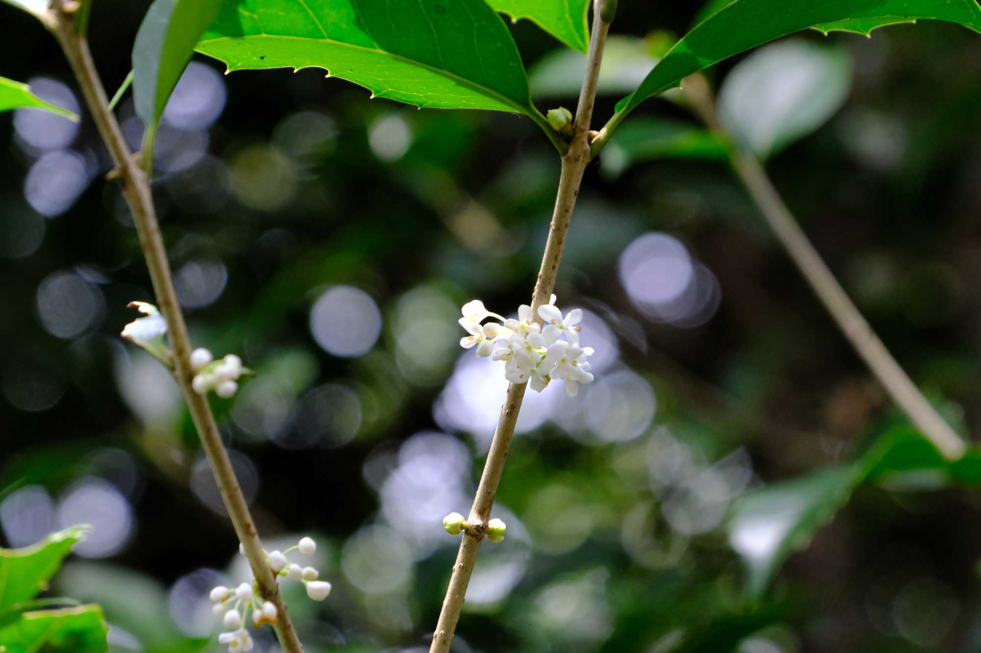 原田マハの合間に東野圭吾の「素敵な日本人」という短編集を読んでいます。SF風のもあれば、ちょっとシニカルな話もあり、短編は読みやすくていいなあと感じています。テレビでは東野圭吾の「危険なビーナス」を放送中ですね。金木犀は終わってしまいましたが、そのあとは、ヒイラギモクセイが楽しませてくれています。純白の花がとてもさわやかです。花は透き通るような白。美しいです。遠くから、何か芳香が漂ってきたので香りのする方へ行って見つけました。金木犀の香りとは異なり、沈丁花に似た感じです。名前の通り、葉っぱはギザギザしてヒイラギみたい。玉ボケきらきら。宙に浮いた一輪。小花がかわいい。(#^.^#)苔の上に散る。風が吹くとはらはらと散っていました。