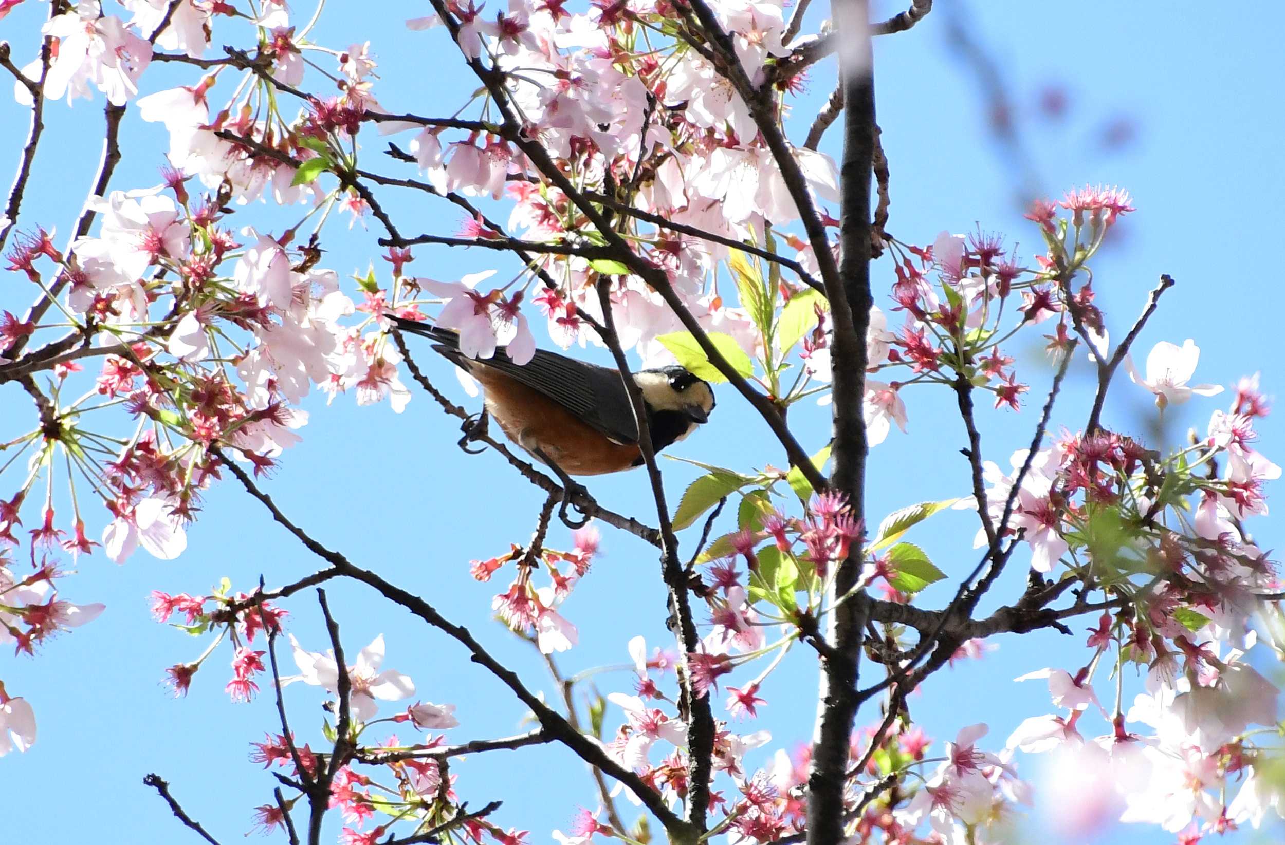 花まつり(4月8日)の頃に戻ります。去年もそうでしたが、今年も甘茶の接待はありませんでした。柄杓もなく、合掌して礼をするのみです。この両側にお花は飾ってありましたが、甘茶をかける柄杓がないのは、とても違和感がありました。コロナ禍ですから仕方がないのですが。( ;∀;)別のお寺には柄杓はありましたので、そちらでは甘茶をかけてきました。イトモミジがなかなか美しい。(#^.^#)桜は、見頃の過ぎの枝垂れと、この八重桜関山くらいでした。バックは枝垂れ桜ですが、見ごろ過ぎでしたので関山を主役に。枝垂れ桜の花びら散って水面に浮かんでいました。別のところの関山です。シジュウカラがやって来たので、慌てて撮りましたが半分隠れてしまったり、ほとんど見えなかったり・・・とうまくいきません。と思ったら、もう逃げてしまいました。せっかくきれいな関山に来たのになあ。( ;∀;)離れたところに行って、戻ってくることはありませんでした。