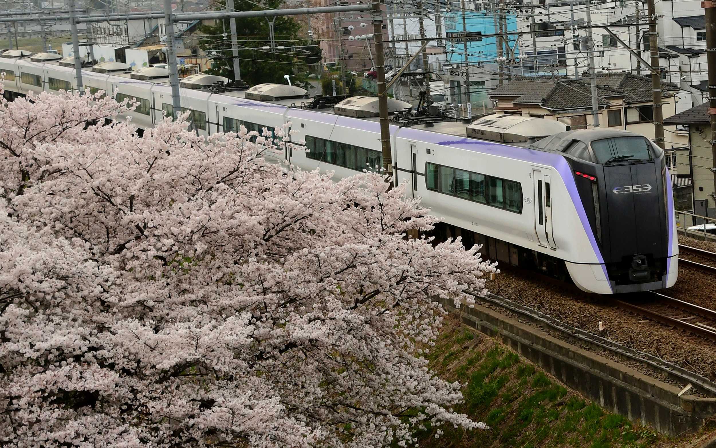 まだ桜写真がたくさんあります。先日は、桜の下にいたらいつの間にか袖のあたりに黄緑色の幼虫がくっついていました。あわててカメラで振り払ってしまいました。以前は、こわくてパニックになったりしましたが、最近は一人で静かに?処理できるようになってきました。('◇')ゞ最近はまったく列車の写真を撮りませんが、桜がらみで撮りたいと思っていました。なんとかE353系が来てくれました。\(^o^)/今度は貨物列車「桃太郎」です。機関車に桃太郎のラッピングされた新型もありますが、これは残念ながらラッピングなしでした。ミツバツツジとソメイヨシノを。低い位置からミツバツツジをメインに。「太白(タイハク)」という桜です。モミジの花がきれいでした。バックはソメイヨシノ。胴吹きのソメイヨシノはよく見かけますが、胴吹き枝垂れ桜は初めて見ました。なんだかかわいい。('◇')ゞ散り桜と椿。