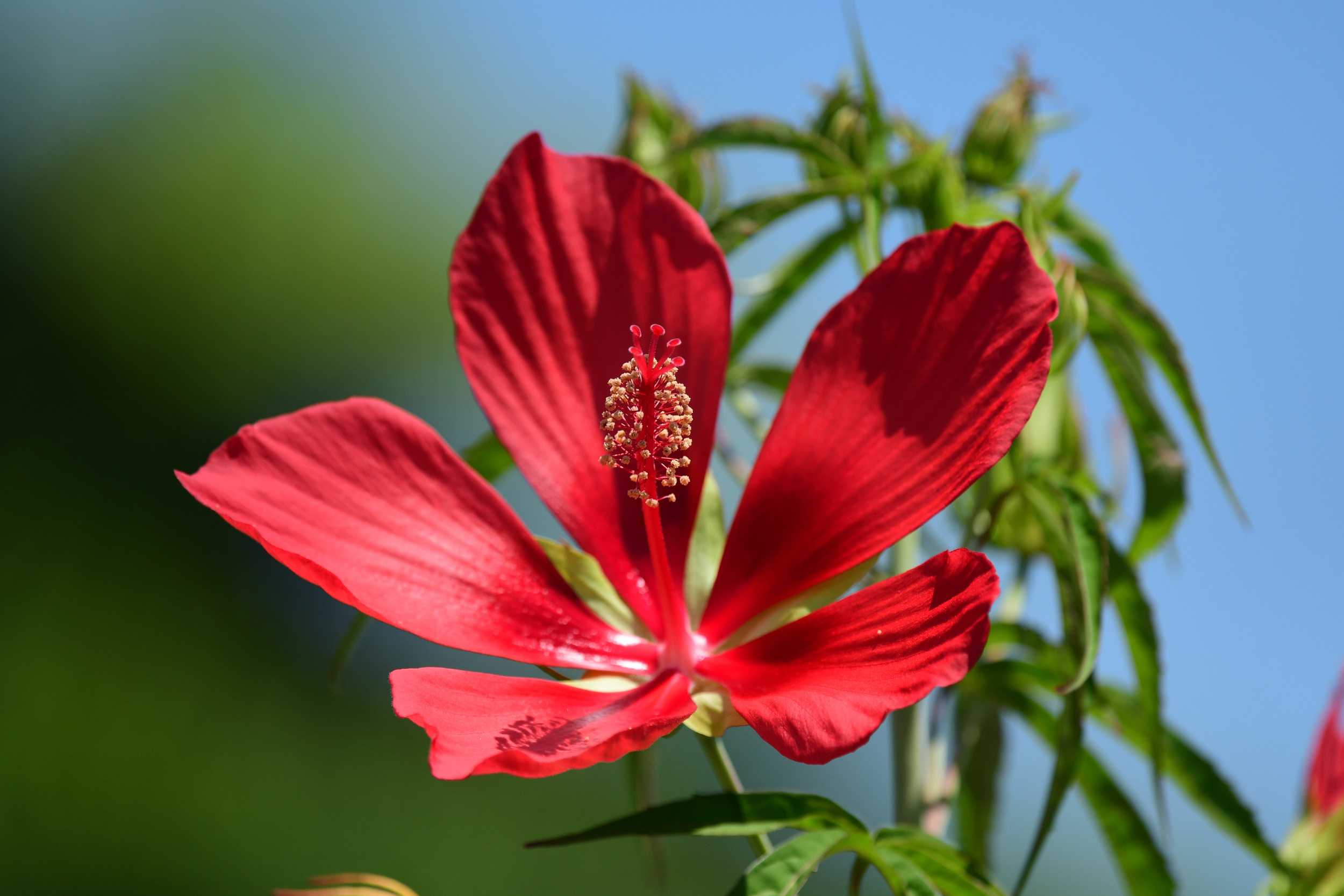 オリンピック開会式を見ました。リアルタイムでテレビを見るのは久しぶりです。最初の方は、「ふーむ、こういうのをやるんだ。」という感じ。ただ、退屈なところもありました。('◇')ゞそれにしても入場行進は長いなー。日本まで見ないうちにテレビは消して録画は残しました。各国の入場は、マスクはしていてもかなり密な国もありました。選手、スタッフに感染がひろがらないか心配になってしまいました。 ・・・・・・・・・・・・・・・・・・・・・・・誕生お祝いの温かいメッセージをありがとうございました。m(__)m昨日のブログで「赤勝て」に登場したモミジアオイです。アオイ科フヨウ属です。ハイビスカスに似ていますね。葉っぱがモミジに似ているところから名前がついたようです。紅蜀葵(コウショッキ)とも呼ばれます。横顔も素敵でした。一方、こちらは花びらの幅の広いタイプ。アメリカフヨウとの交配種が多くつくられているとのことです。夏空にむかって。おまけはムクゲ。これもアオイ科フヨウ属です。もう一つおまけ。これは、タチアオイ。アオイ科タチアオイ属です。