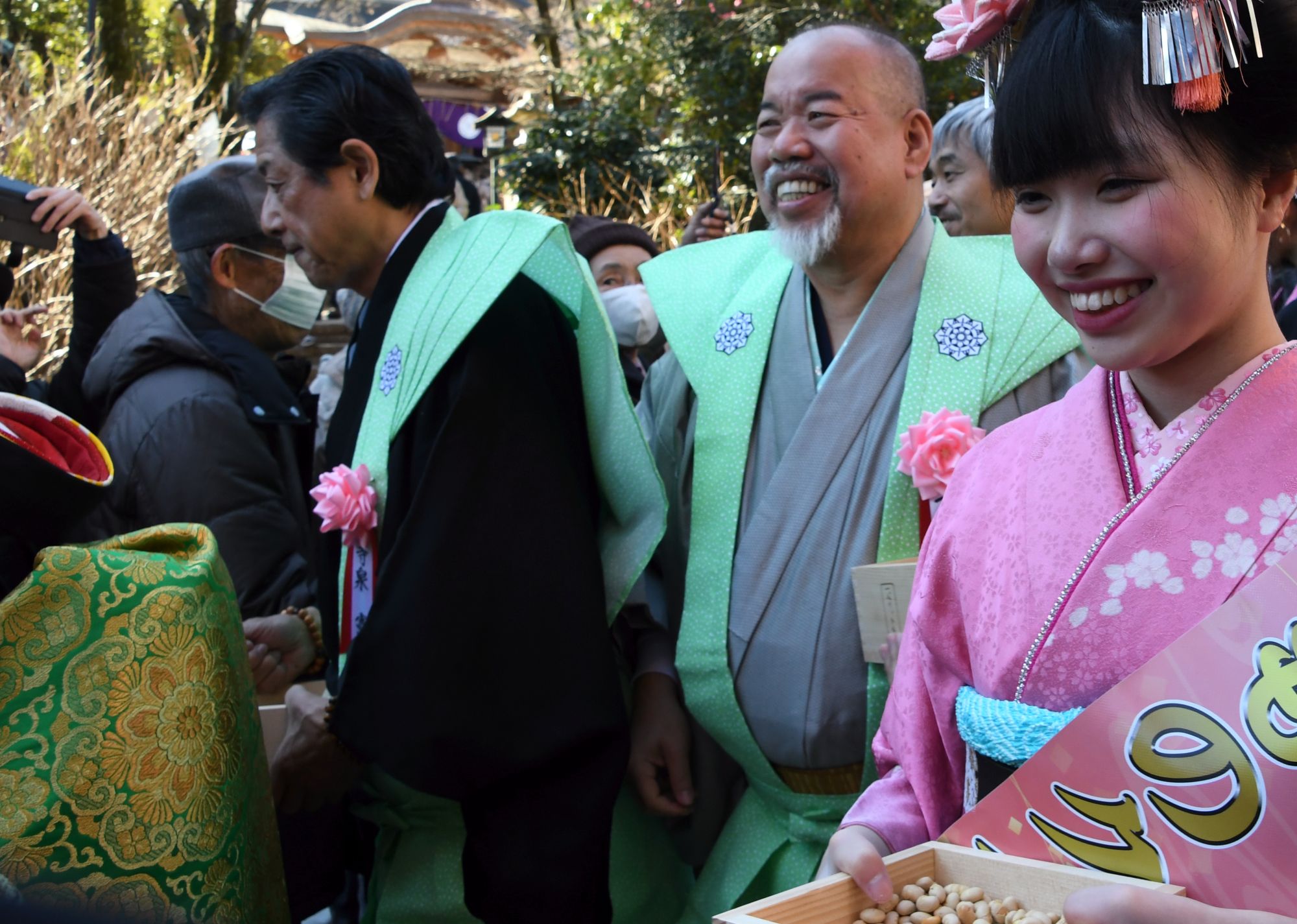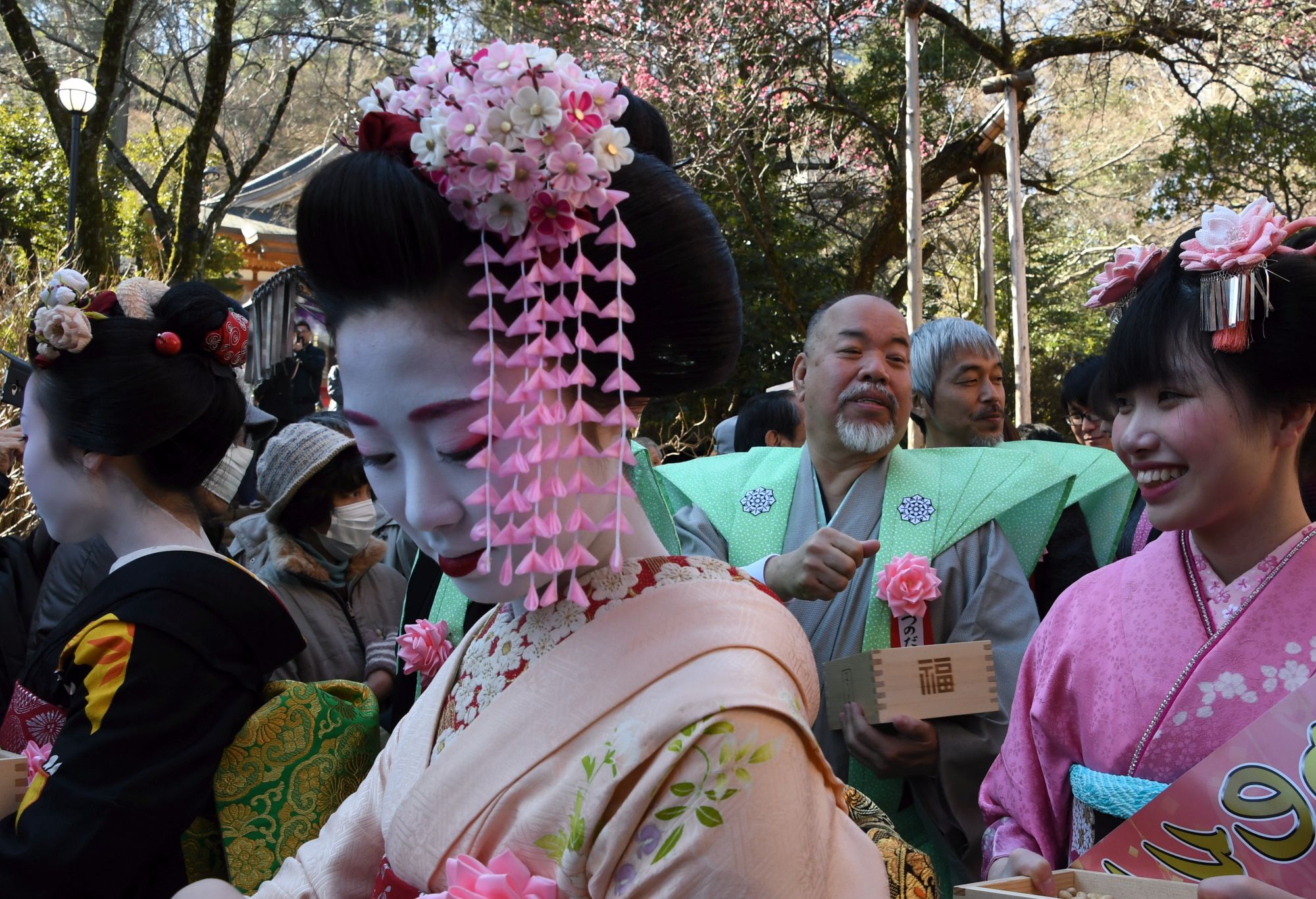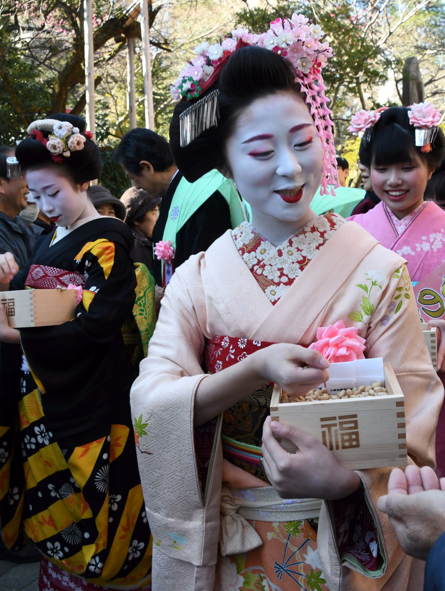 舞妓さんは笑顔とともに豆をくださいます。