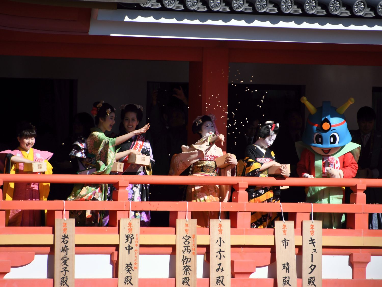 舞妓さんの小なみさんやミス日本の方、一般の方からたくさん豆をいただきました。