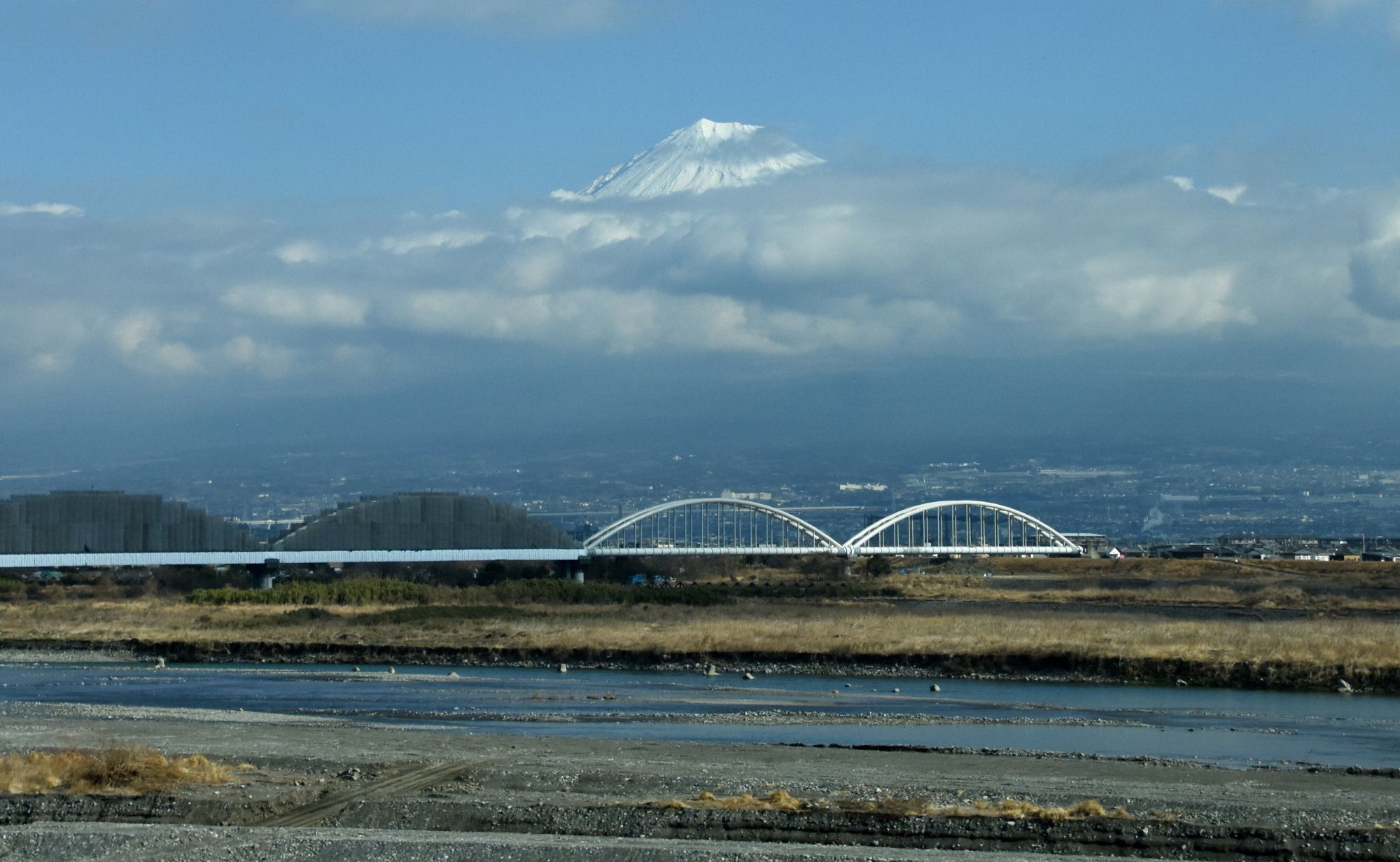 今回も晴れだったので、富士川の鉄橋上の富士山を期待しました。