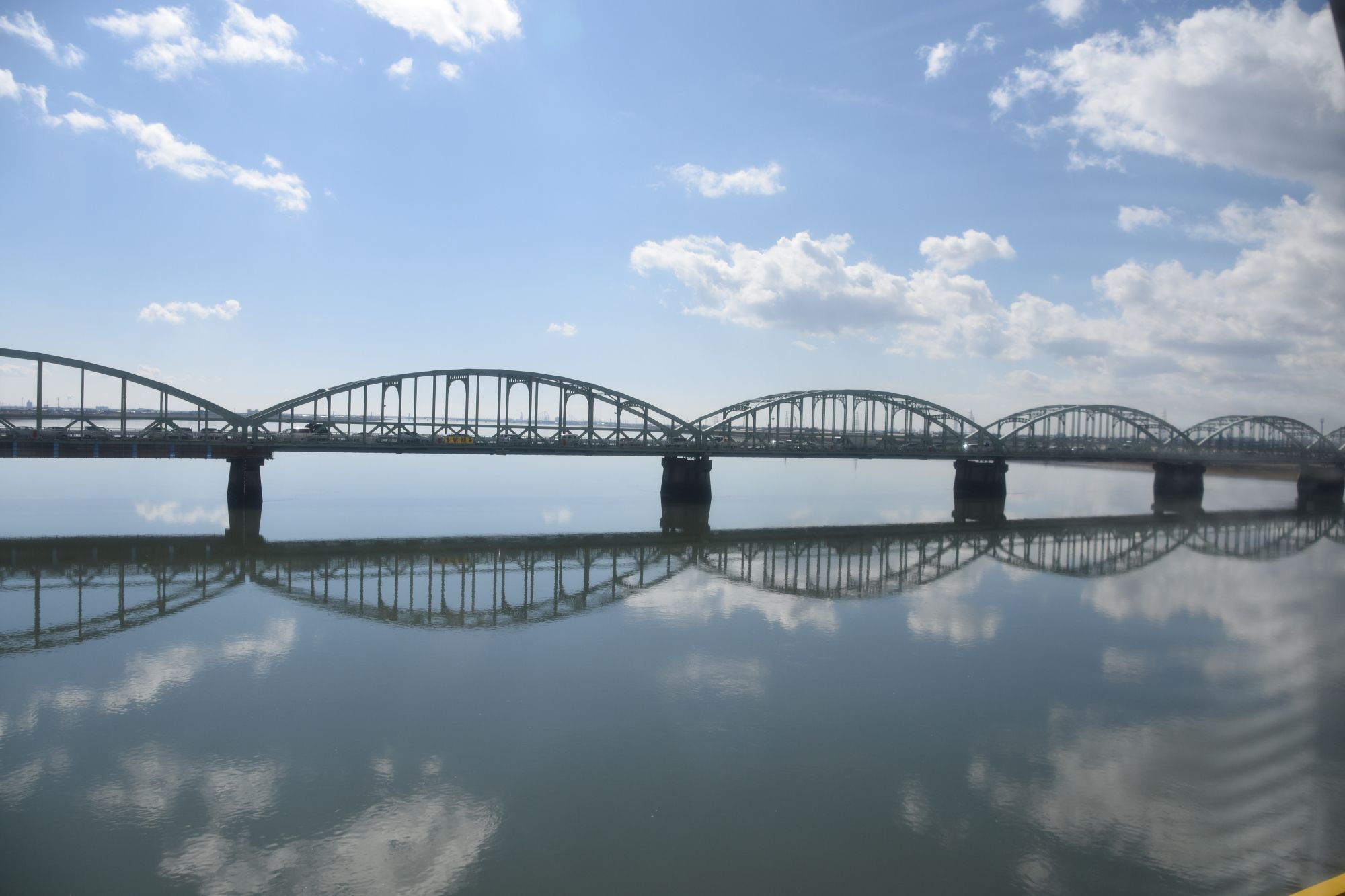 名古屋から10分くらい走ったところで大きな川と橋が見えました。