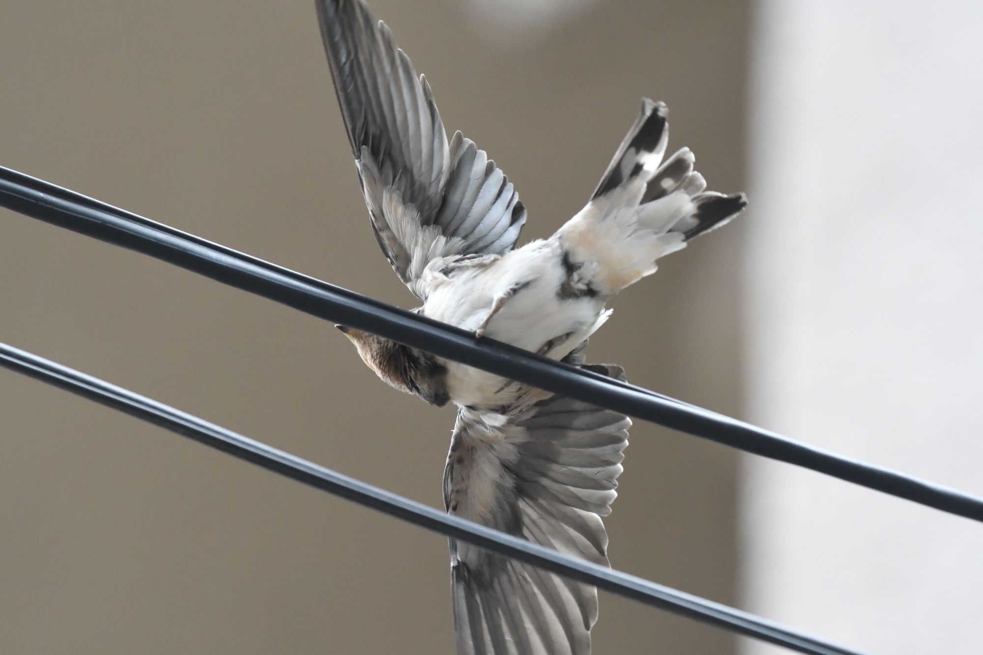 時々、電線でばたばたしたり糞を下に落としたりします。