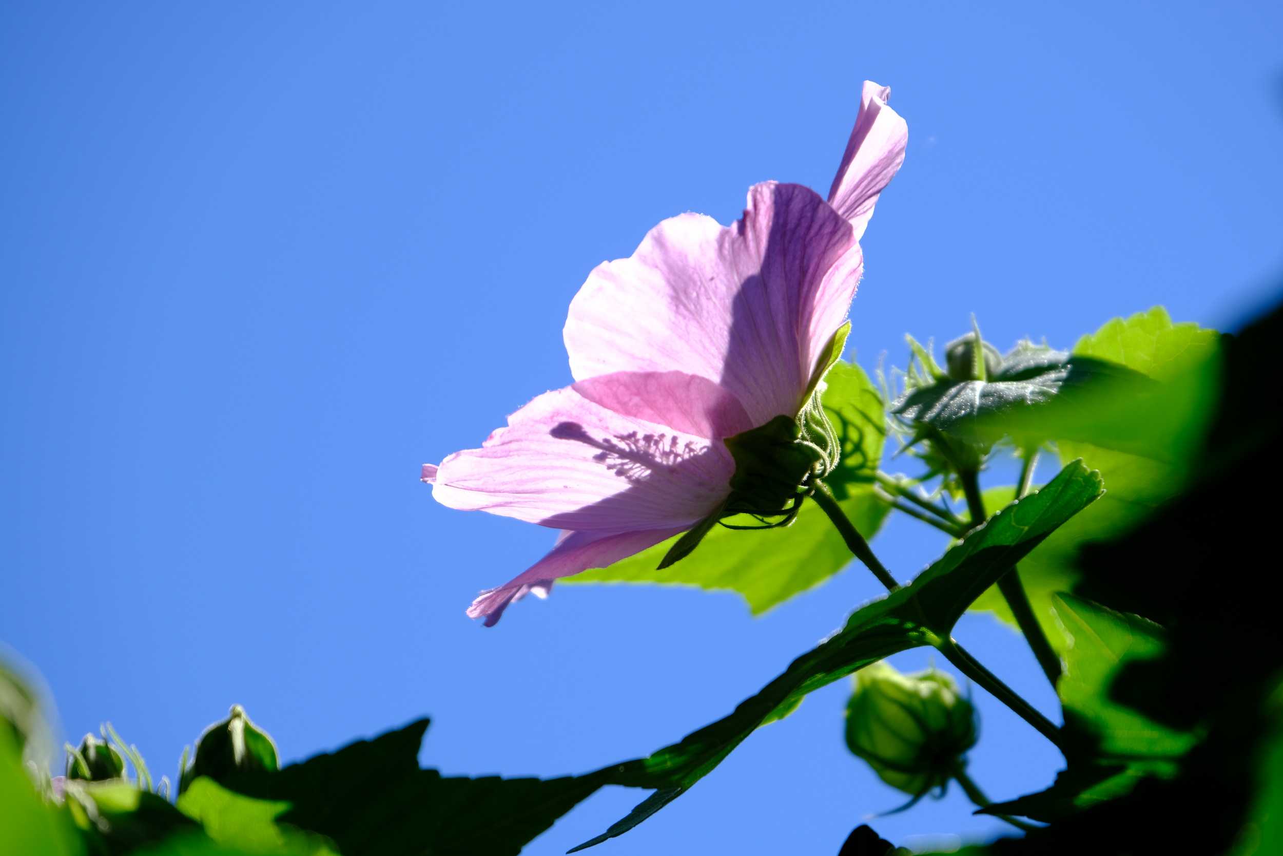 ムクゲは6月後半くらいから咲き始めますが、フヨウはそれよりも遅く7月後半くらいから咲きだします。