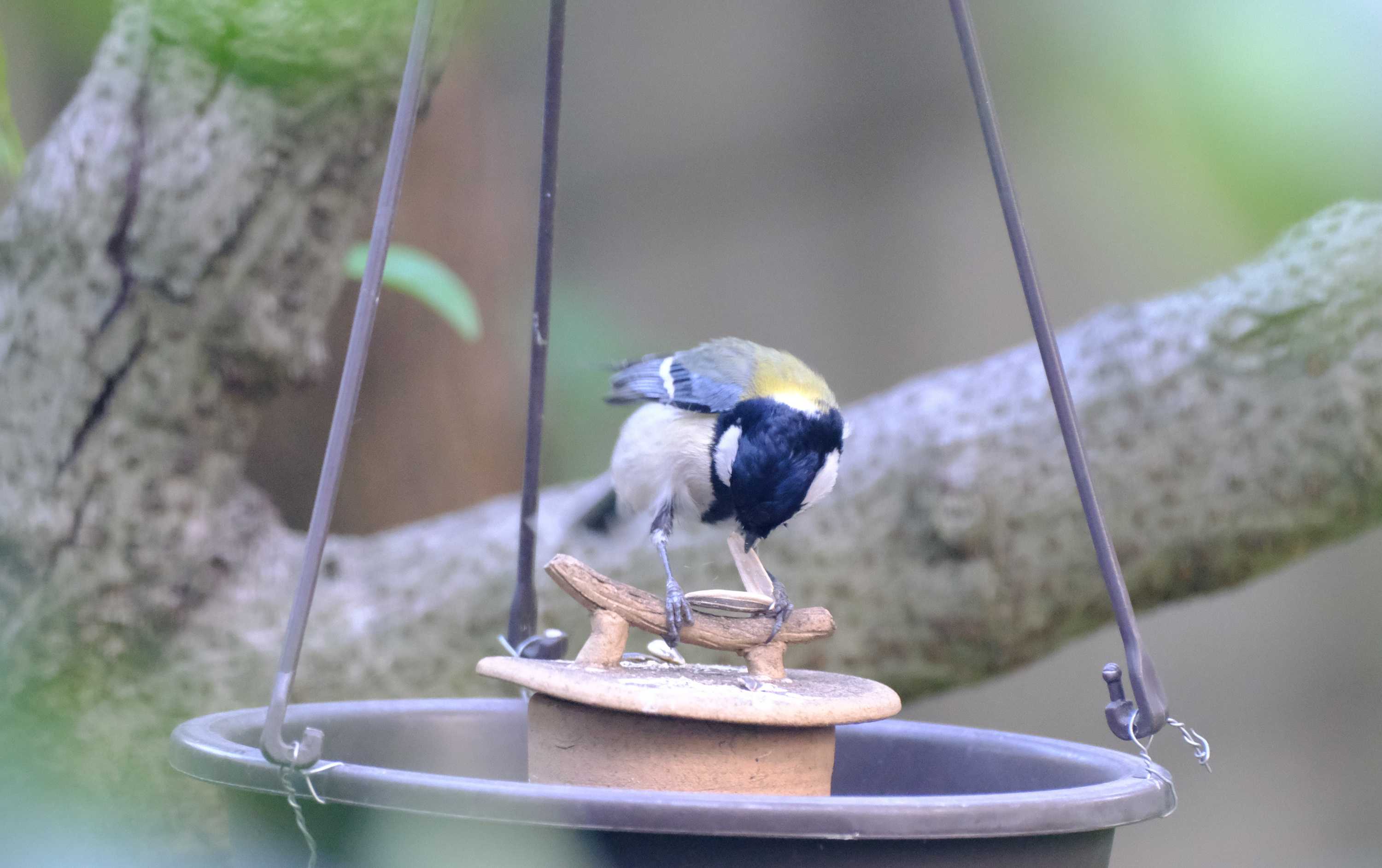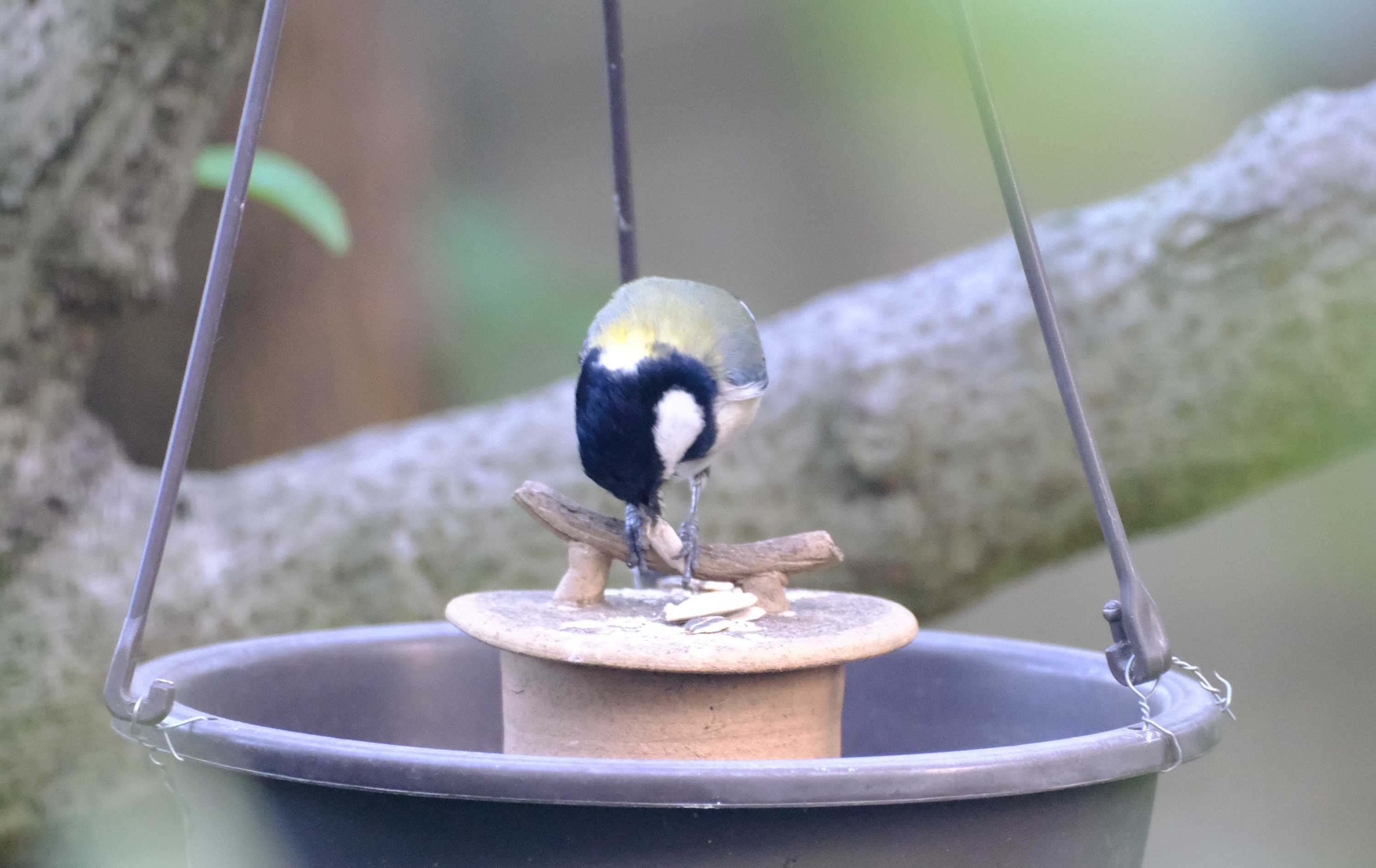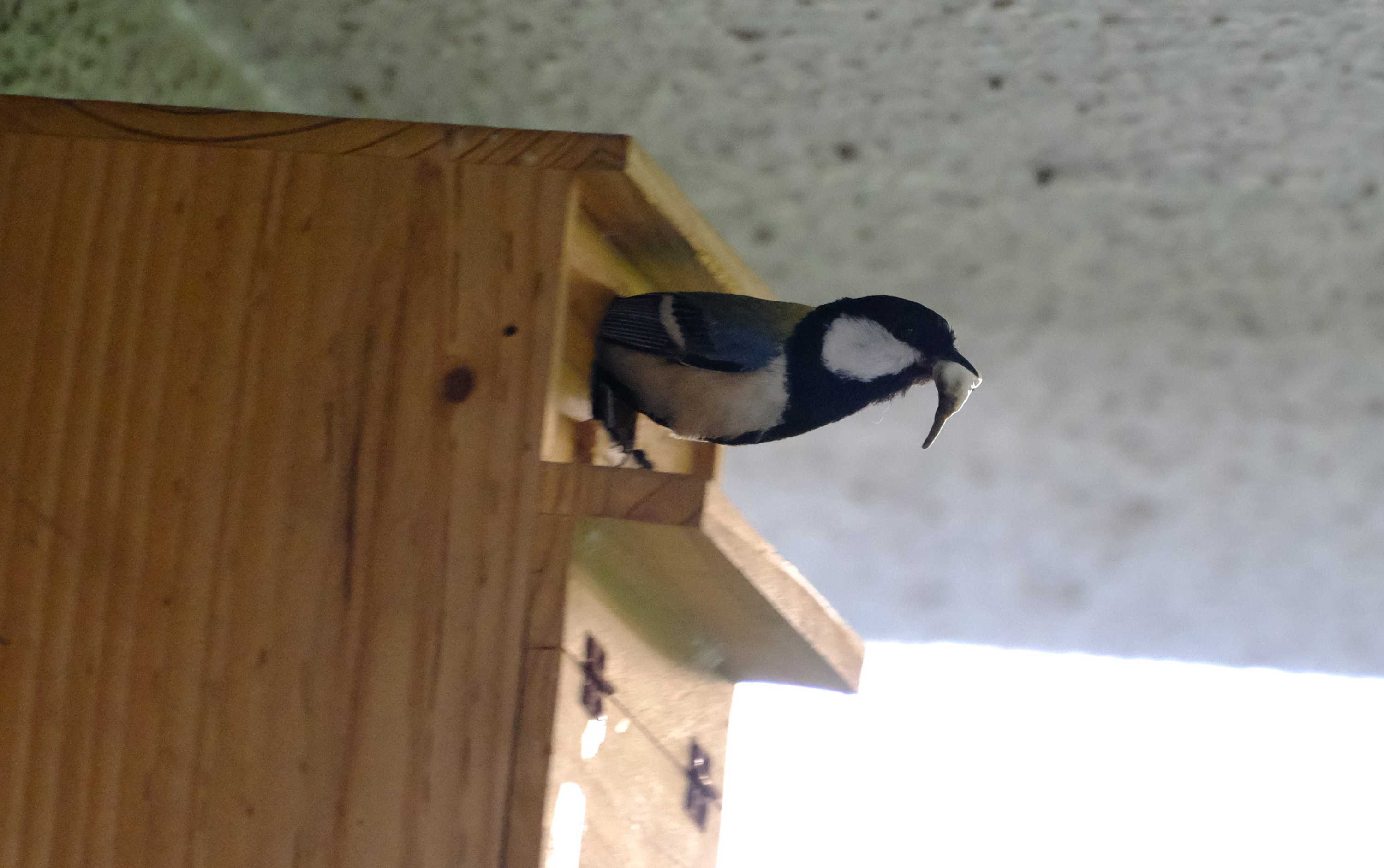 今年は早めにシジュウカラが庭の巣箱に営巣しました。